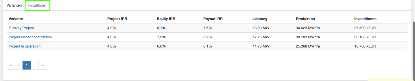 - In der Projektliste werden die Kennzahlen (Renditen, Kaufpreis, usw.) aus der Standard Variante dargestellt.