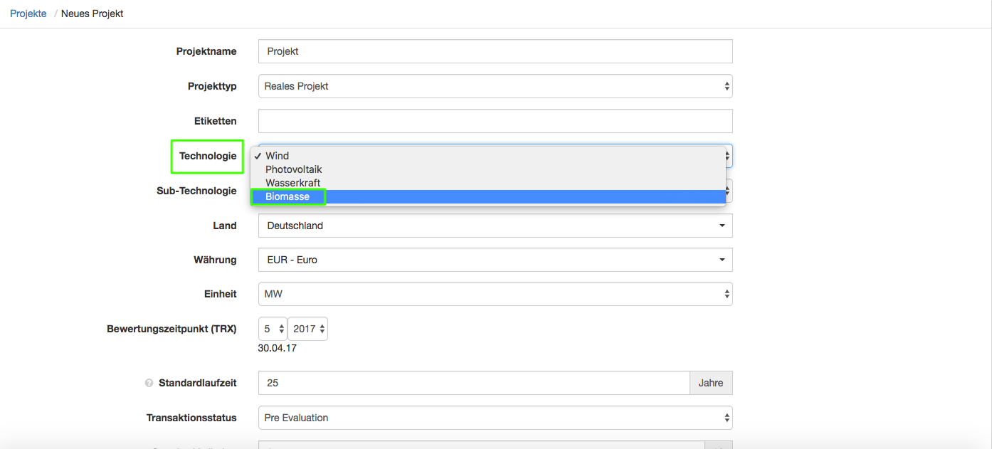 Hier erhalten Sie eine Hilfestellung um ein Biomasse Projekt in greenmatch zu modellieren.