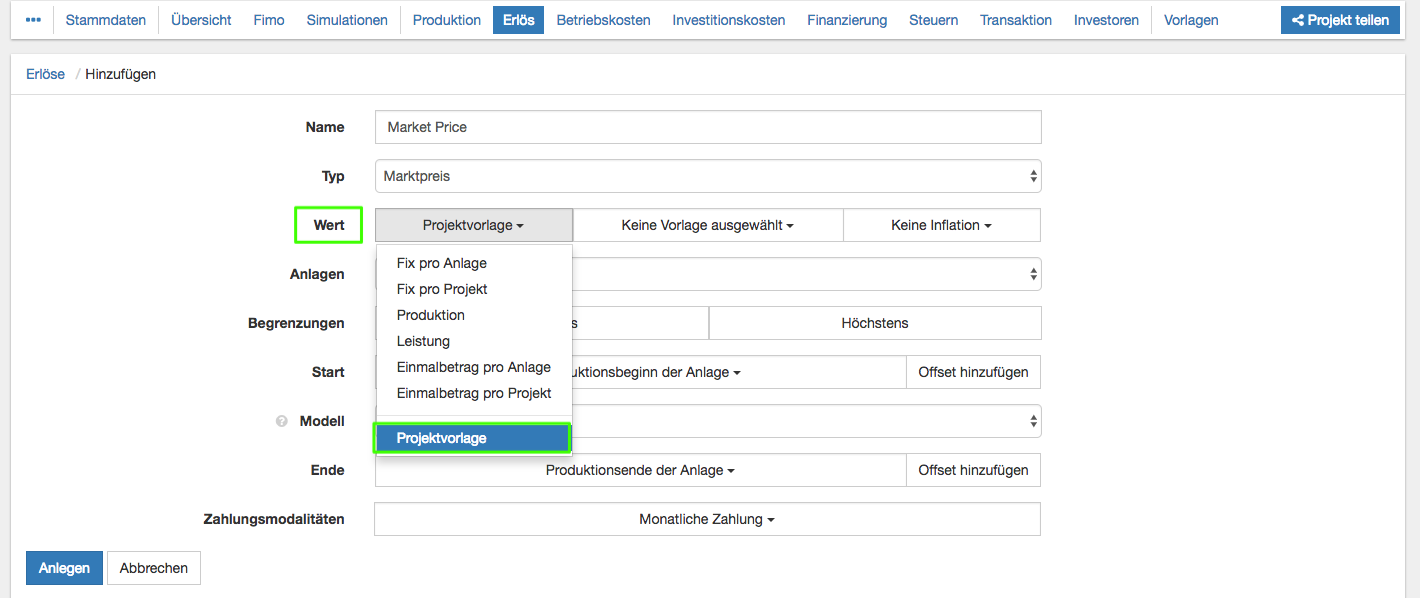 In diesem Artikel erfahren Sie, wie Sie mit Hilfe von Projektvorlagen verschiedene Vergütungssysteme oder Strompreisentwicklungen erfassen können.