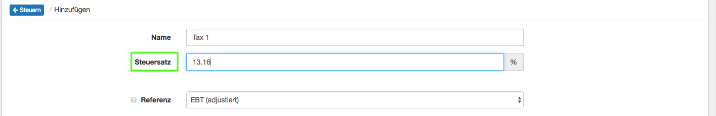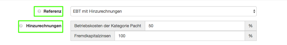 - Wählen Sie als Referenz den Eintrag "EBT mit Hinzurechnungen" aus dem Dropdownmenü aus.