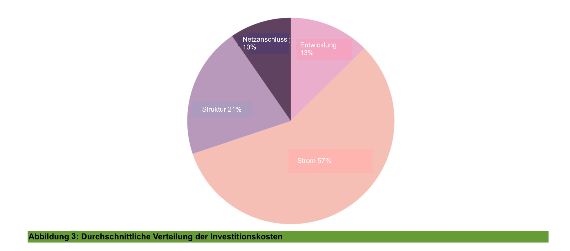 Dabei belaufen sich die Investitionskosten für die PV-Module und die Wechselrichter auf 80% der gesamten Installationskosten. Die restlichen Kosten werden zu je ca. 10% durch den Netzanschluss sowie die Projektentwicklung und weitere Nebenkosten verursacht (Siehe Abbildung 3).