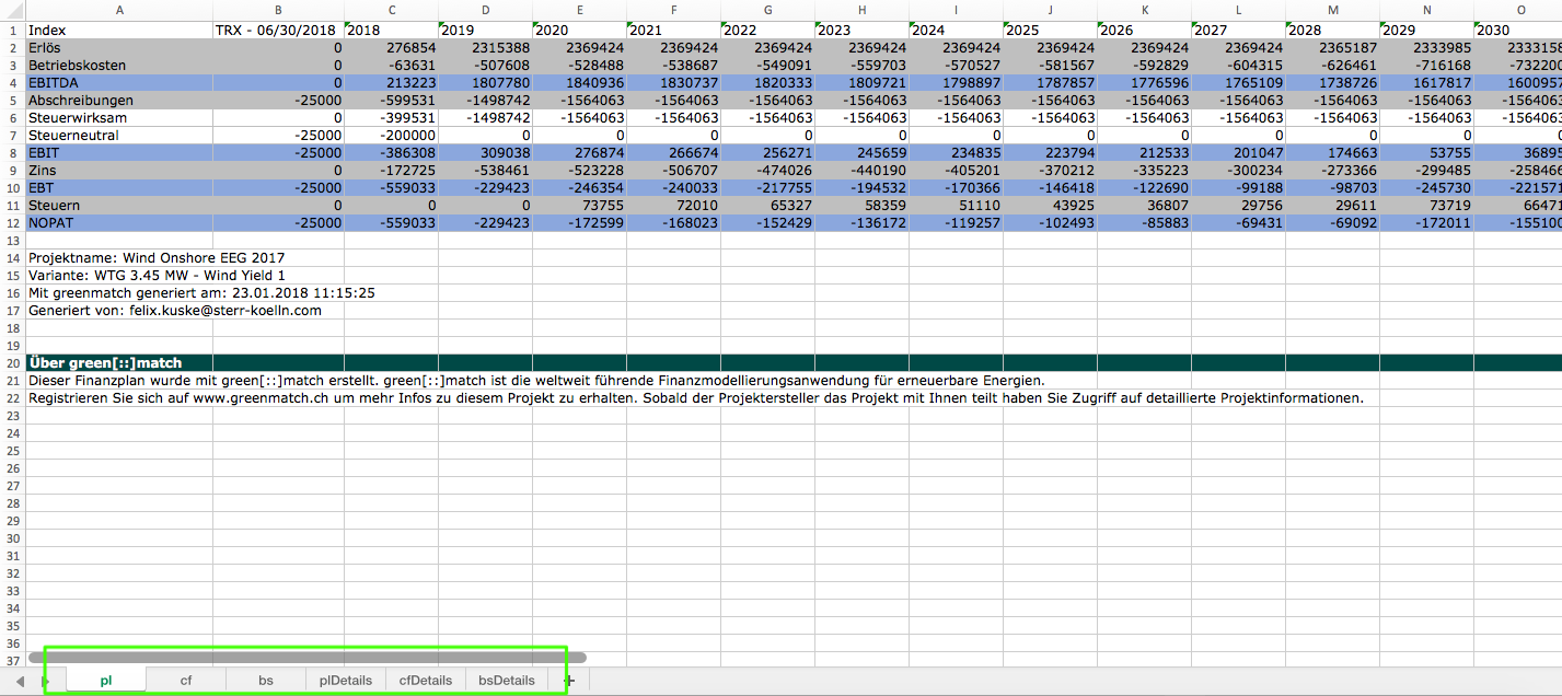 - In der Excel Datei finden Sie alle Informationen analog des "Fimo" Bereichs im GM Valuation Projekt: